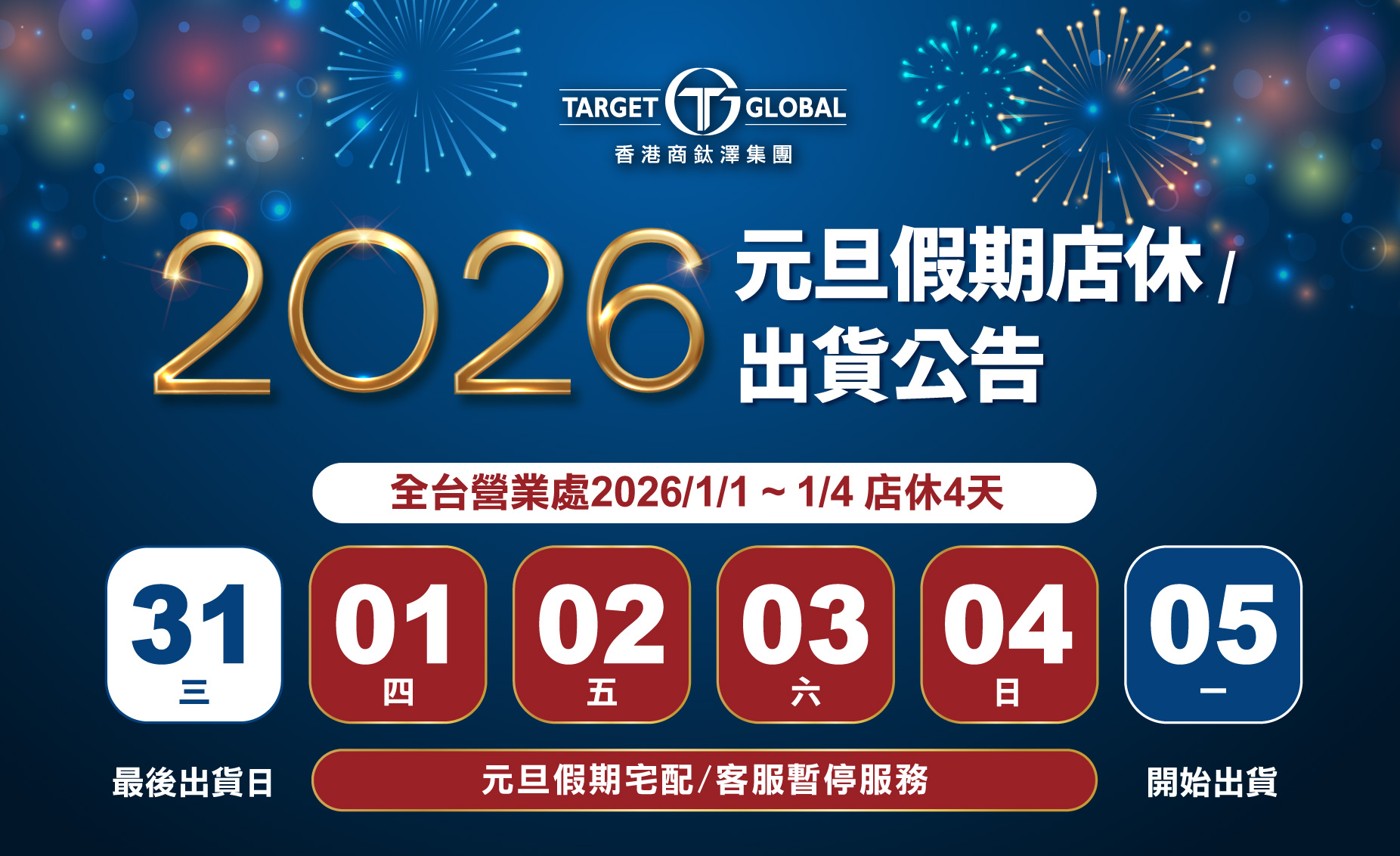 休假公告|2026元旦假期店休/出貨公告